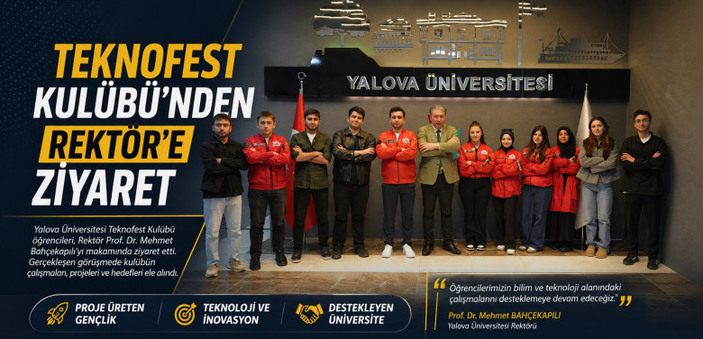 Yalova Üniversitesi bünyesinde faaliyet gösteren Teknofest Kulübü öğrencileri, Rektör Prof. Dr. Mehmet Bahçekapılı’yı makamında ziyaret etti. Gerçekleşen görüşmede kulübün yürüttüğü çalışmalar, devam eden projeler ve öğrencilerin bilim ile teknoloji alanındaki hedefleri kapsamlı şekilde ele alındı. Rektörlük makamında gerçekleşen ziyarette, Teknofest Kulübü Başkanı Nurlan Alioğlu, kulübün faaliyetlerine ilişkin detaylı bir sunum yaptı. Alioğlu, öğrencilerin özellikle savunma sanayii, yazılım, yapay zekâ ve insansız sistemler alanında geliştirdiği projeler hakkında bilgi verirken, başta TEKNOFEST olmak üzere ulusal ve uluslararası yarışmalara katılım hedeflerini de paylaştı. Kulübün disiplinler arası çalışma anlayışıyla hareket ettiğini belirten Alioğlu, öğrenci ekiplerinin proje geliştirme süreçlerinde aktif rol aldığını ifade etti.