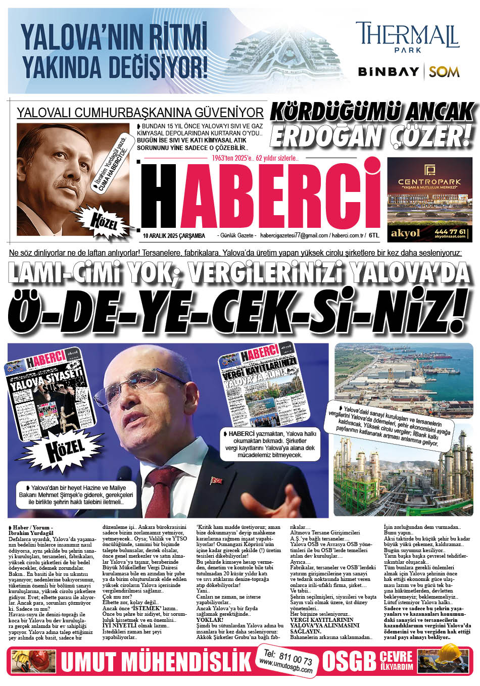 YTSO Başkanı; Bakan Şimşek’ten şirketlerin vergi ödemelerini yerinde yapmalarını talep etti. Bakan Şimşek, Demiryürek’le birebir görüşmesinde Yalova’nın talebini son derece haklı bulduğunu, ülke genelinde bu yönde bir düzenleme üzerinde çalıştıklarını, dev şirketlerin üretim yaptıkları yerde vergilerini ödemelerinin hakkaniyetli ve doğru olacağına inandıklarını söyledi.