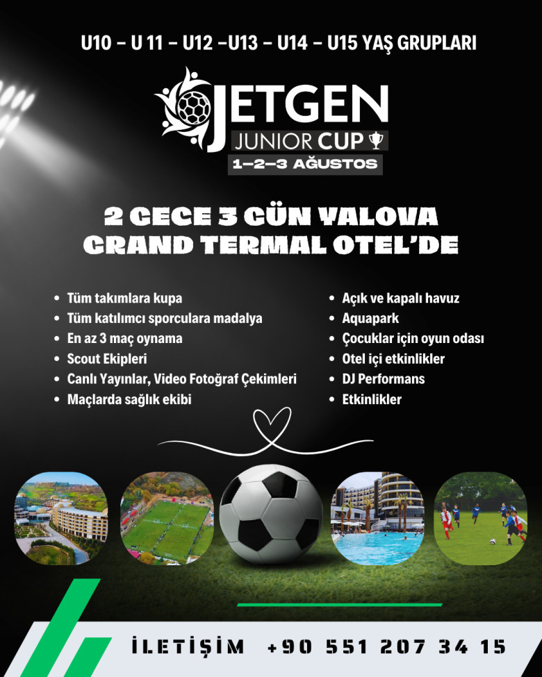 Jetgen Junior Cup, futbolun yanı sıra sporcular ve aileleri için sosyal etkinlikler, seminerler ve motivasyon buluşmaları da içeriyor. Tüm katılımcılar turnuva süresince tam pansiyon olarak Yalova Grand Termal Otel’de konaklayacak. Bu da etkinliği yalnızca bir spor organizasyonu değil, aynı zamanda yaz kampı havasında bir gelişim sürecine dönüştürüyor.